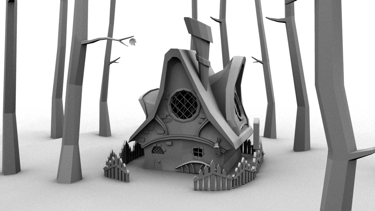Final exterior model , did the concept art for the house first, then modeled in maya. changed some shapes of the original design to make it match the interiors properly.UVing, will test the textrue next.